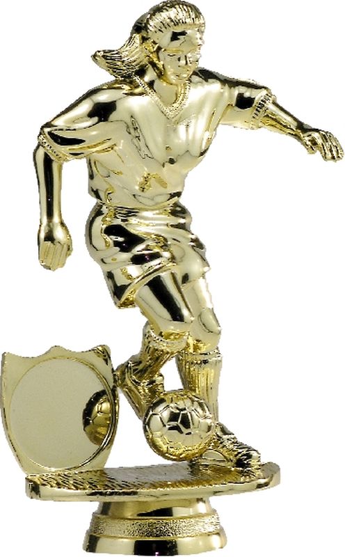 Female player mid action with space for 25mm insert - in bright gold for soccer trophies. Female and male figures available. Plenty of base and riser / column options available to complete your award selection.