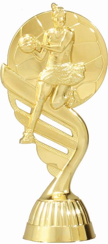 Range of FastFix trophy parts allow for easy to use and affordable trophies. Netball top features ca player mid-action on a stylish ball background.