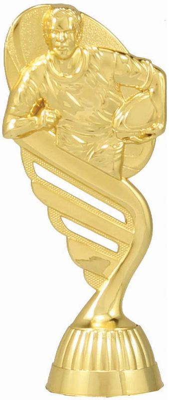 Range of FastFix trophy parts allow for easy to use and affordable trophies. Rugby top features a player mid-action on a ball inspired background.