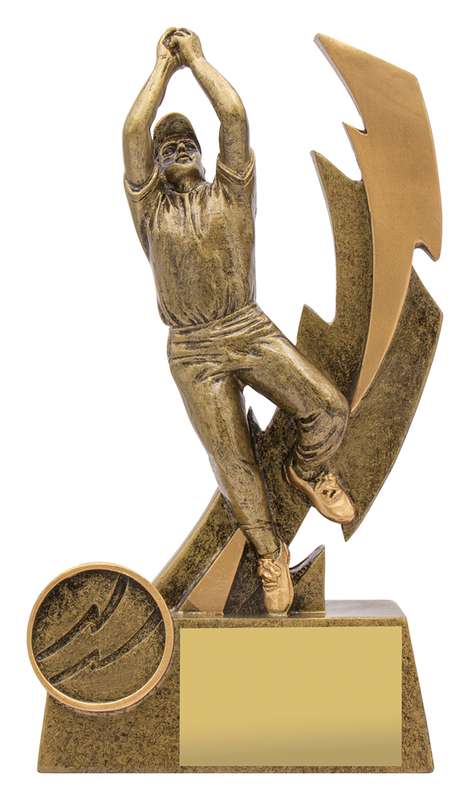 Cricket Shazam Fielder part of extended series of batsmen and bowlers, showcases the fielder in action with excellent detail. Cricket trophies completed in classic trophy gold colours. There is the option if required of including your logo.