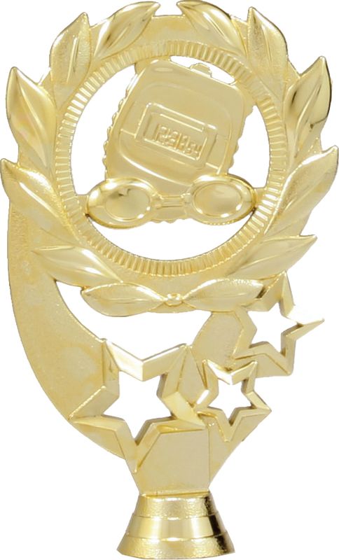 Different tops and figures to suit your design requirements for various Swimming awards. The gold star inspired theme features prominent swim elements - googles and stop-watch against a stylish wreath background. Wide range of bases and riser components to choose from to build your multi-part trophy.